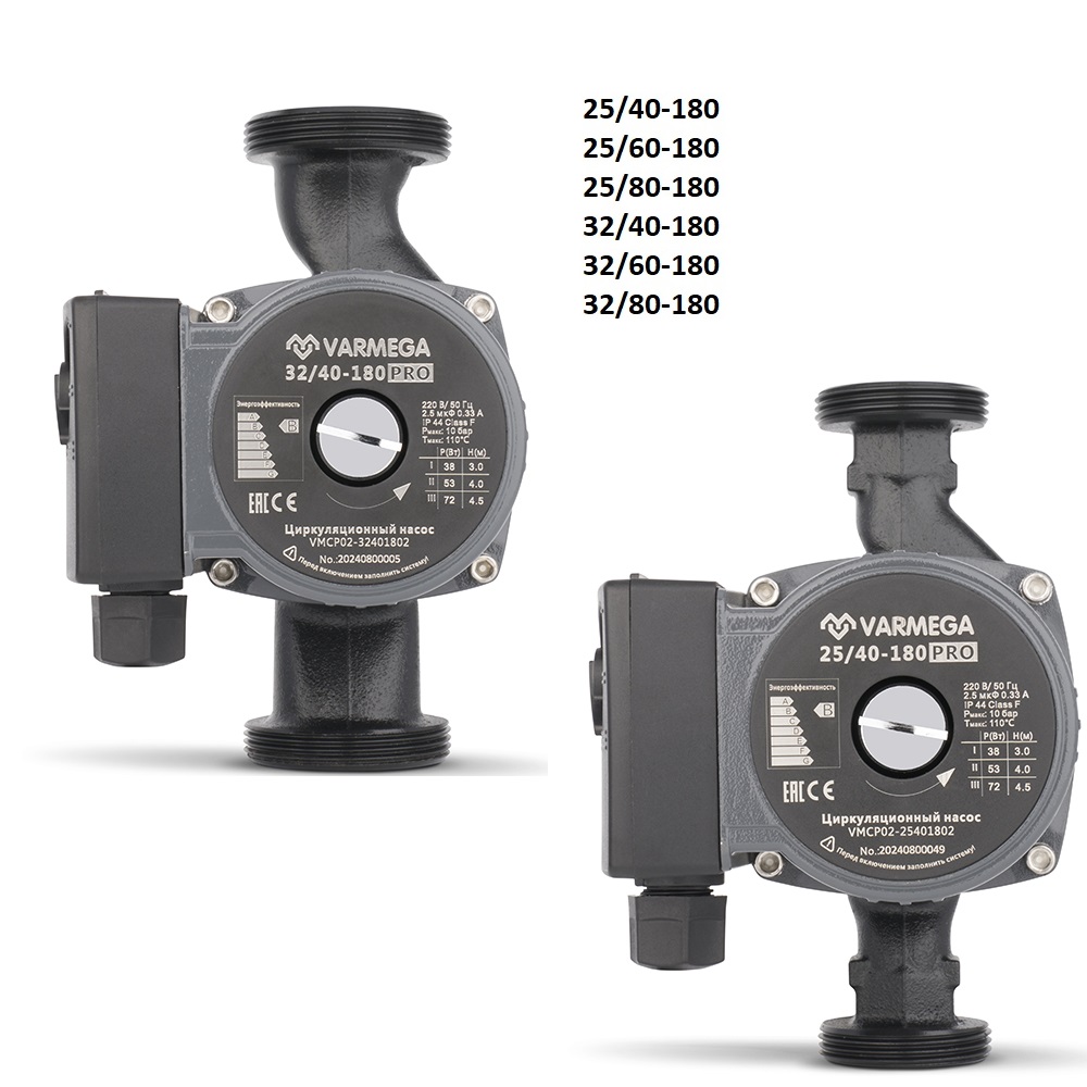 Циркуляционные насосы Varmega предназначены для создания принудительной циркуляции теплоносителя в различных системах радиаторного отопления и системах отопления водяным теплым полом, в системах нагрева ГВС, в системах кондиционирования, в системах охлаждения промышленного оборудования и т. д. Циркуляционные насосы Varmega предназначены для перекачивания чистых, маловязких, неагрессивных и невзрывоопасных рабочих жидкостей без твердых или длинноволокнистых включений, а также примесей, содержащих минеральные масла.